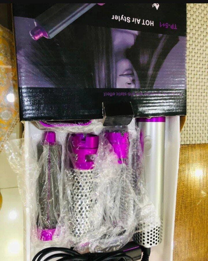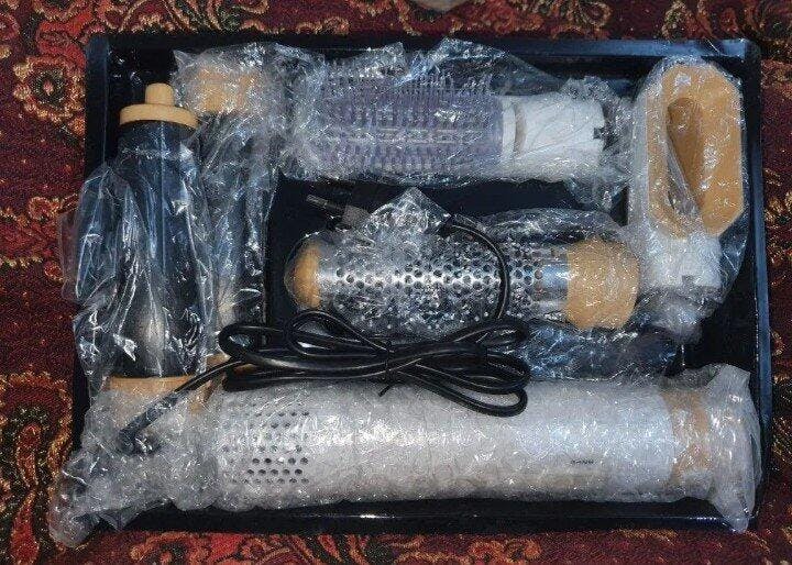 This High Quality 5-in-1 Hair Styler Brush is designed to give you salon-like results at home without spending money on multiple tools. Powered by a strong 1000W motor, Negative Ion technology, and Ceramic coating, it reduces frizz, protects your hair from heat, and gives a smooth, shiny finish. With 5 detachable brush heads, you can dry, straighten, curl, and volumize your hair effortlessly. Lightweight, travel-friendly, and safe for all hair types.