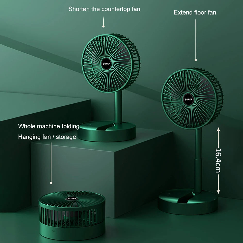 Folding Telescopic Floor Fan: Stay Cool and Comfortable with Adjustable, Silent, and Rechargeable Cooling
